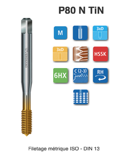 TAR P80N TIN HSSK M2,5x0,45 A REFOUL.